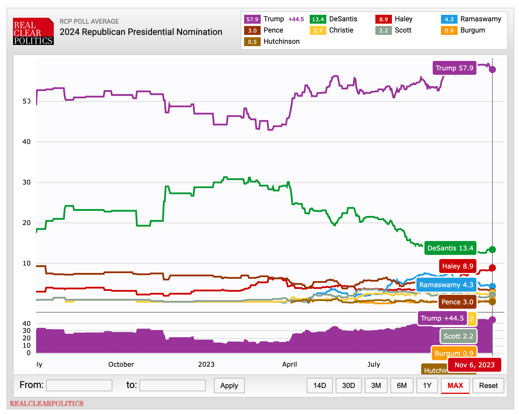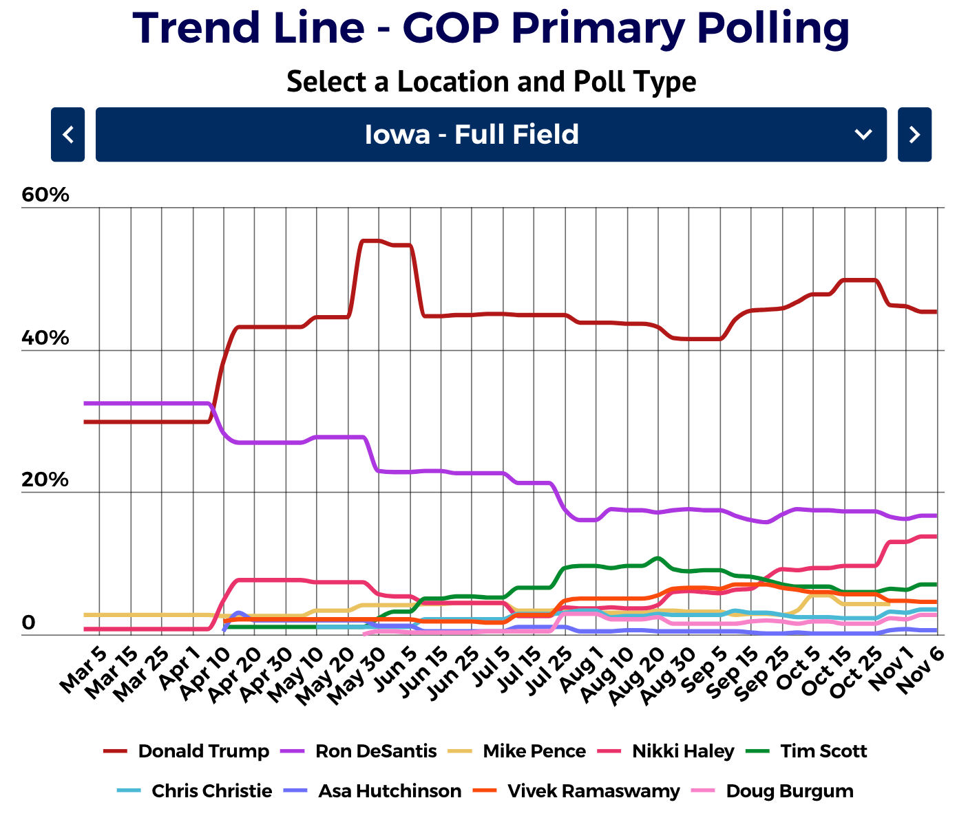 At this point in the previous races, Mitt Romney had been briefly overtaken nationally by Herman Cain and Trump found himself in a momentary tie with Ben Carson, but neither change lasted. Romney would go on to be temporarily surpassed again by Newt Gingrich and Rick Santorum, but both flamed out. His and Trump’s national frontrunner status for most of their races did accurately reflect that they would be the eventual winners…and their position was neither as strong nor as durable as Trump’s is now.